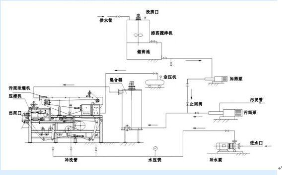 ※ 濾網(wǎng)沖洗技術(shù):網(wǎng)帶沖洗系統(tǒng)采用特殊設(shè)計(jì)的濾網(wǎng)清洗器,此技術(shù)可大大降低清洗水的用量。可以采用二沉池的出水做清洗水,改變了壓濾機(jī)使用清水洗網(wǎng)成本高的現(xiàn)狀。