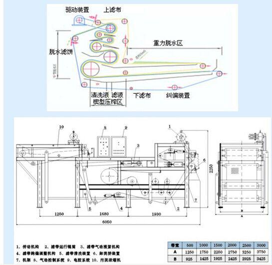 三.帶式壓濾機(jī)的工作原理以及系統(tǒng)脫水過程: